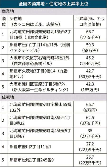 上昇値のトップ10には北海道、大阪、沖縄など